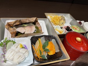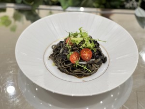 白身魚と海老のベニエ バルサミコソースと赤玉葱のヴィネグレット