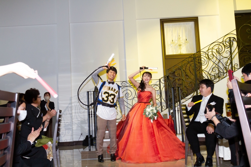 Aモモクロのライブかと思わせるペンライトを使ったお色直し再入場!