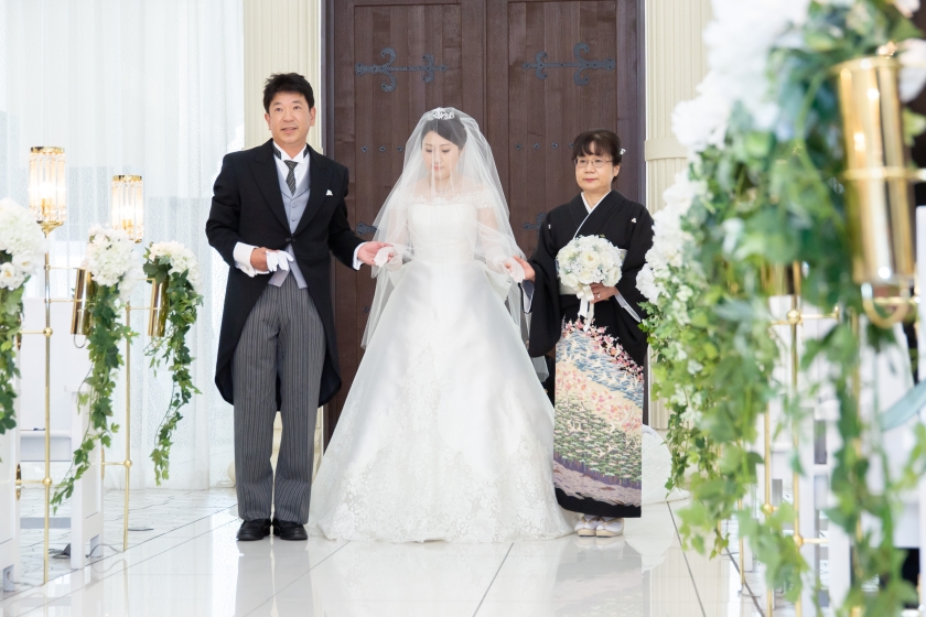 新婦:父母と一緒に歩いたバージンロード -