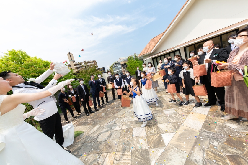 A挙式後の菓子まき