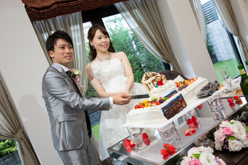 A共通の趣味の映画に関係する演出や小物、ケーキにこだわった