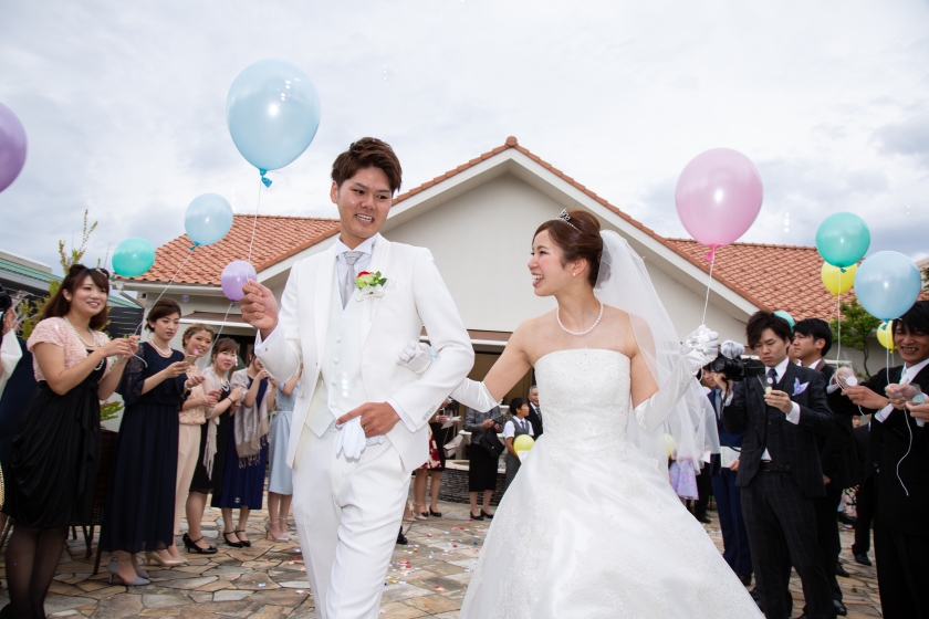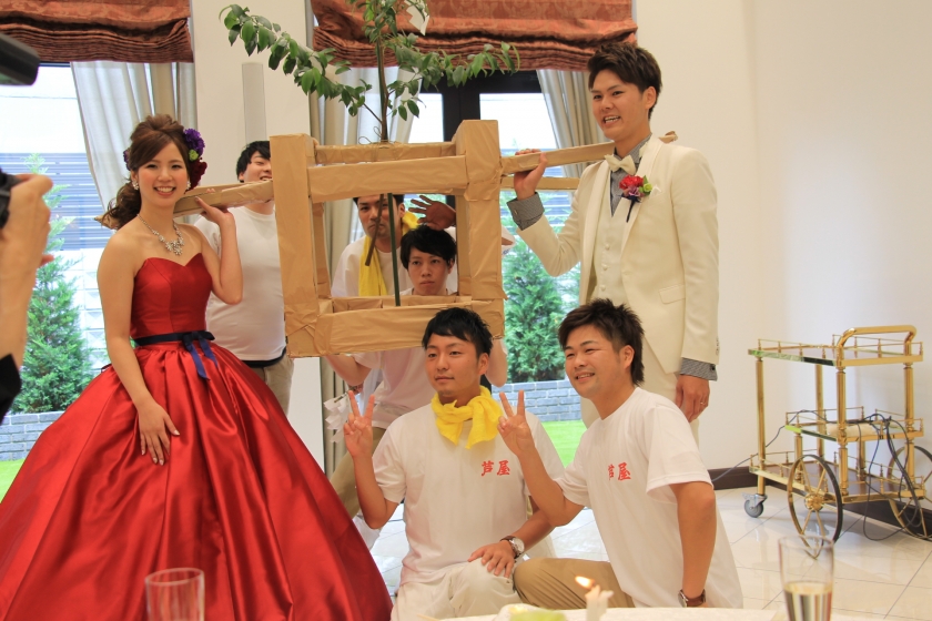 手作りのフラワーシャワー、カラードレス当てクイズなど演出にこだわりました。